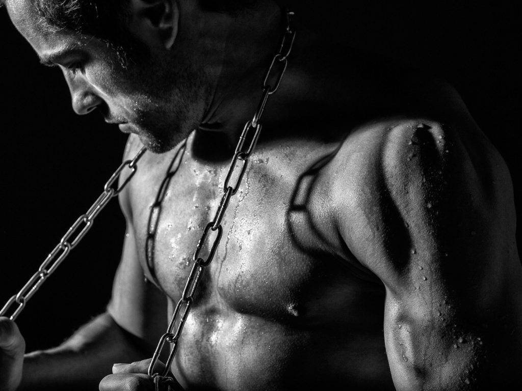 Перед началом упражнения нужно выдохнуть. После выдоха обмотайте свою грудь цепью и закрепите ее. Затем сделайте глубокий вдох, напрягите грудные мышцы и широчайшие мышцы спины, и растяните цепь.