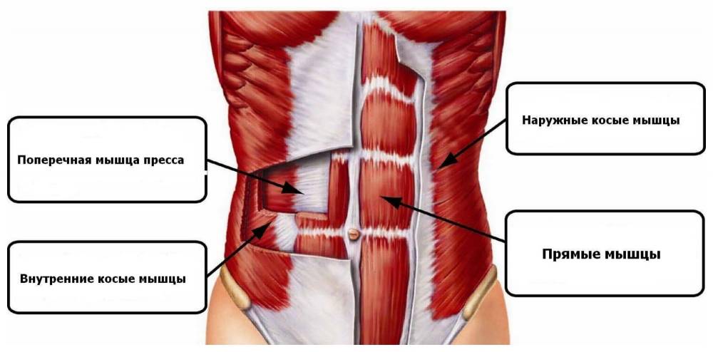Элементами данной структуры являются поперечные, внутренние косые, наружные и прямые мышцы.