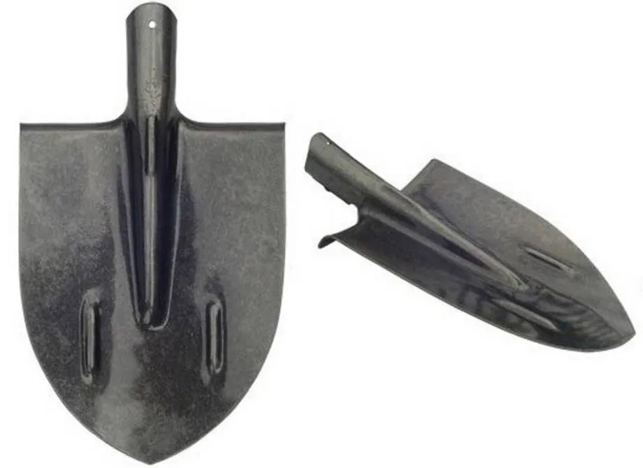- Для выкапывания и извлечения грунта и формирования ям. Строение лопаты аналогично выше описанному варианту, но той разницей, что полотно имеет прямоугольную и закругленную форму.