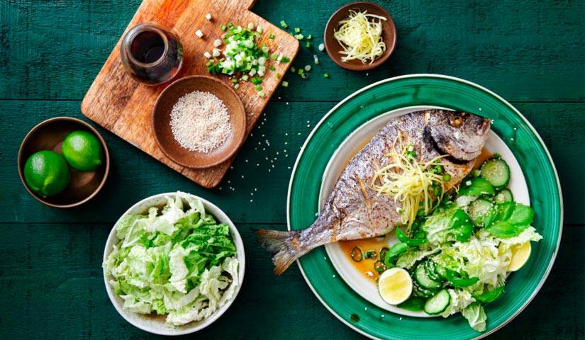 - Обед — сделанная на пару рыба, мелко нашинкованная белокочанная капуста.