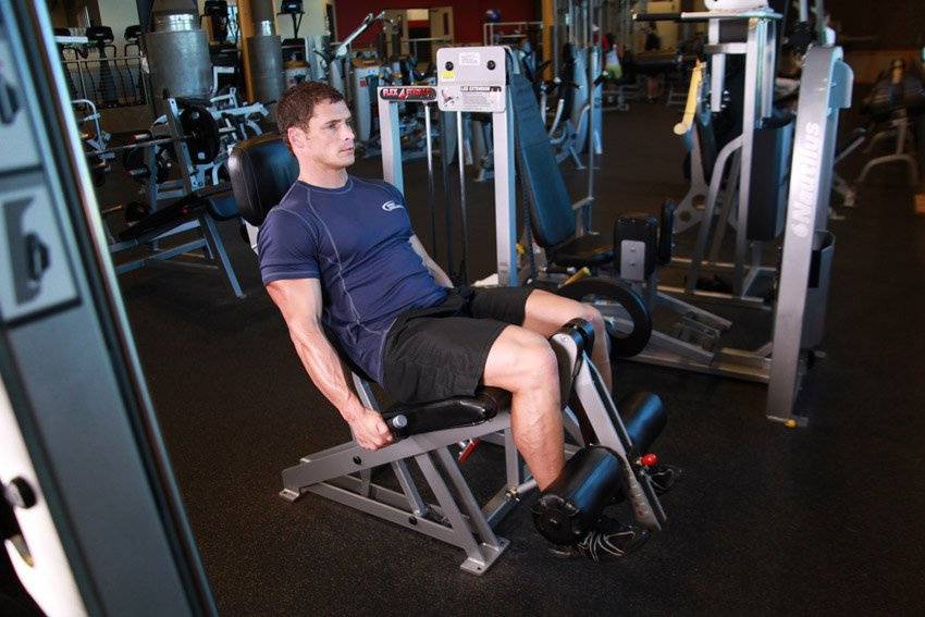 Разгибание ног на скамье 6 комплектов по 15 повторений Подъем веса со штангой 5 комплектов по 15 повторений Стоя на цыпочках 10 комплектов по 10 повторений