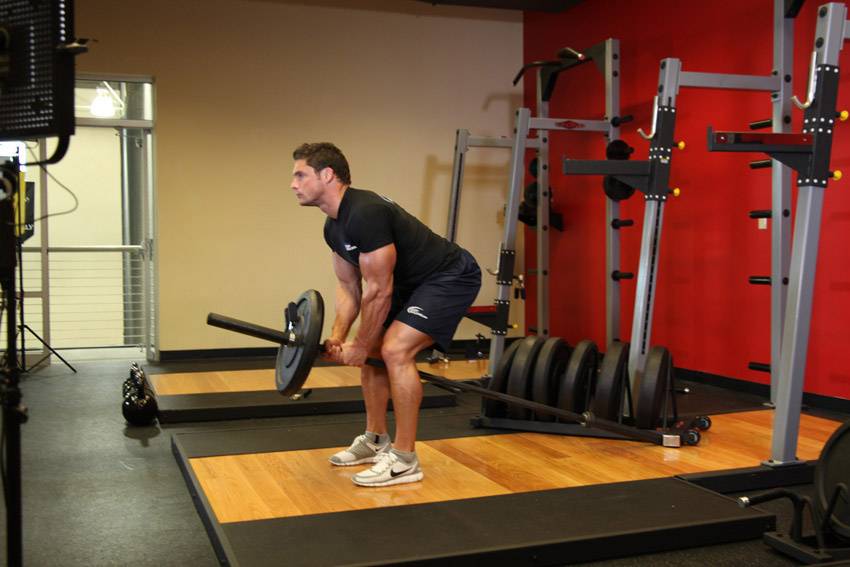 Тягу Т-штанги он ценил за сильную растяжку широчайших в начале повтора. «Пирамида» включала 15-12-12-10-10 повторений. Данное упражнение, в отличие от подтягиваний, работало уже не на ширину спины, а на ее «толщину». Последний сет был чудовищно тяжелым.