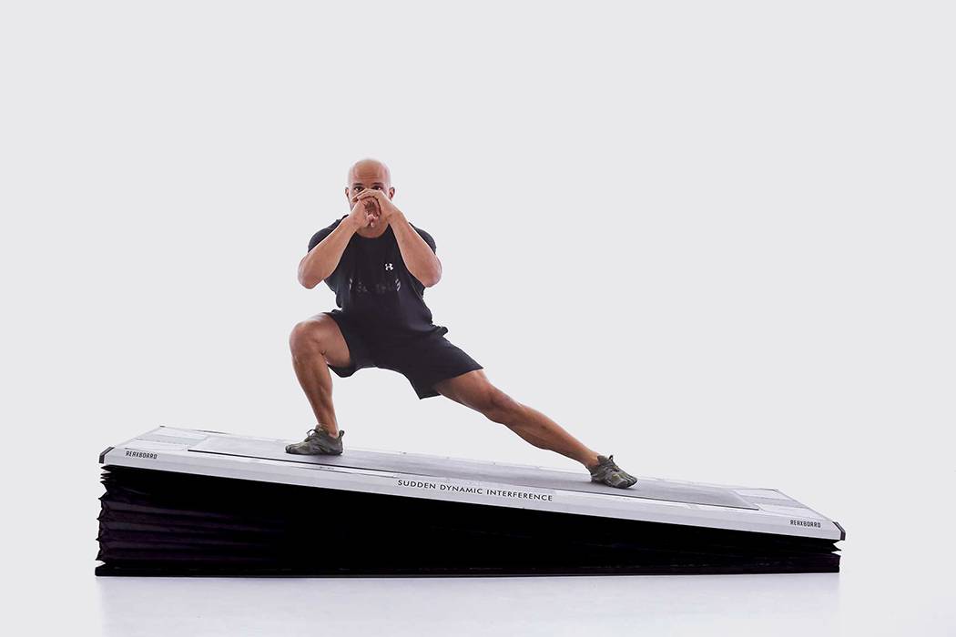 Пожалуй, самый серьезный из тренажеров для создания неустойчивости — такая платформа, как Reax Board от Reaxing. Если все предыдущие предметы можно — при желании — добавить и в свой домашний тренировочный арсенал, то это — устройство, которое найдется разве что в фитнес-клубах. Платформа очень крупная — при выполнении планок и отжиманий она вмещает человека во весь рост. Рабочая поверхность приподнята на 30-50 см над землей и во время тренировки может внезапно и достаточно резко наклоняться то в одну, то в другую сторону. Нужно всегда быть начеку и держать мышцы в напряжении, чтобы остаться в равновесии. Кстати, в приложении Reax Board App можно выбрать подходящую программу тренировок на платформе.