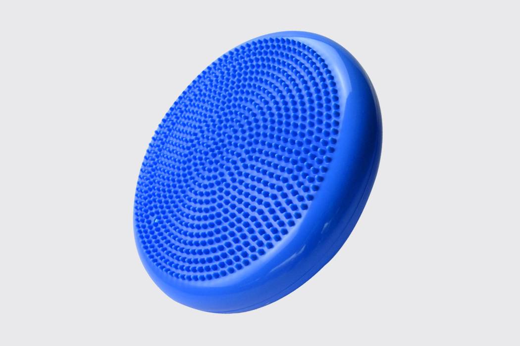 #2. Балансировочная массажная подушка Представляет собой резиновый диск, частично наполненный воздухом. Компактный и легкий тренажер, занимающий мало места, отлично подойдет для домашних тренировок. Рельефная поверхность улучшает микроциркуляцию крови в тканях, способствует общему расслаблению. Упражнения на балансировочной подушке рекомендованы для профилактики плоскостопия, укрепления суставов и связок. Благодаря небольшой высоте тренажер безопасен и подходит для людей любого возраста, это идеальный вариант для новичков в баланс-тренинге.
