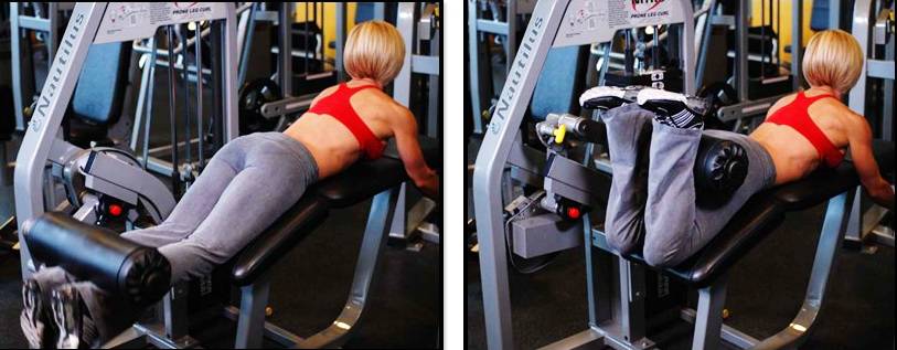 - Сгибание ног в тренажере лежа (бицепс бедра);