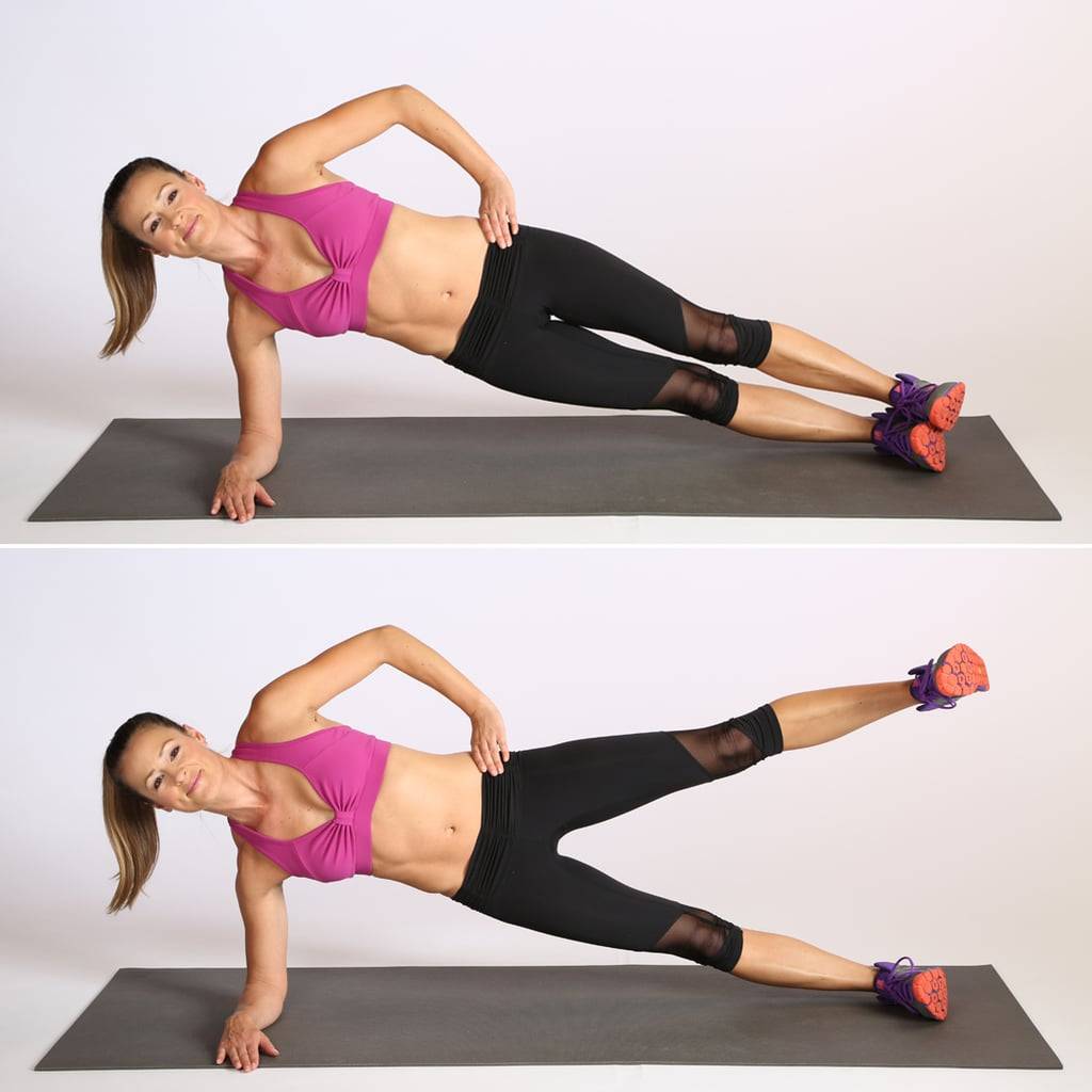 Планка с поднятием ноги поможет женщинам укрепить мышцы ягодиц и убрать лишний жир с бедер. Это единственный динамический вид упражнения, который доступен для выполнения новичками.