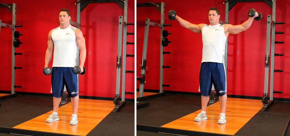 Армейский жим стоя или сидя — Разминка и затем 3 рабочих сета.Махи гантелей в стороны х 3.