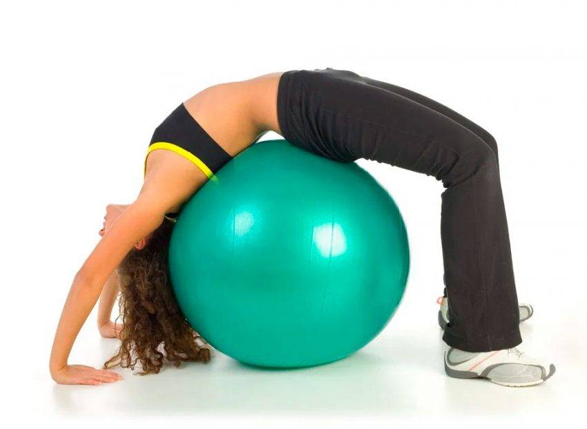 - Нужно сесть на фитбол и опуститься таким образом, чтобы мячик касался поясницы;