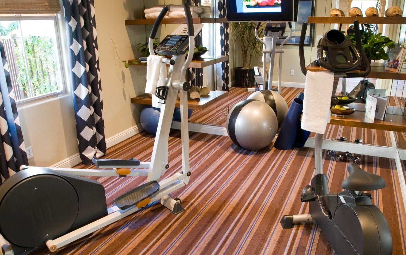 Если в комнате есть большое окно, через которое проходит большой поток естественного света, планируйте расстановку тренажеров и снарядов так, чтобы оконные проемы находились сбоку от них.