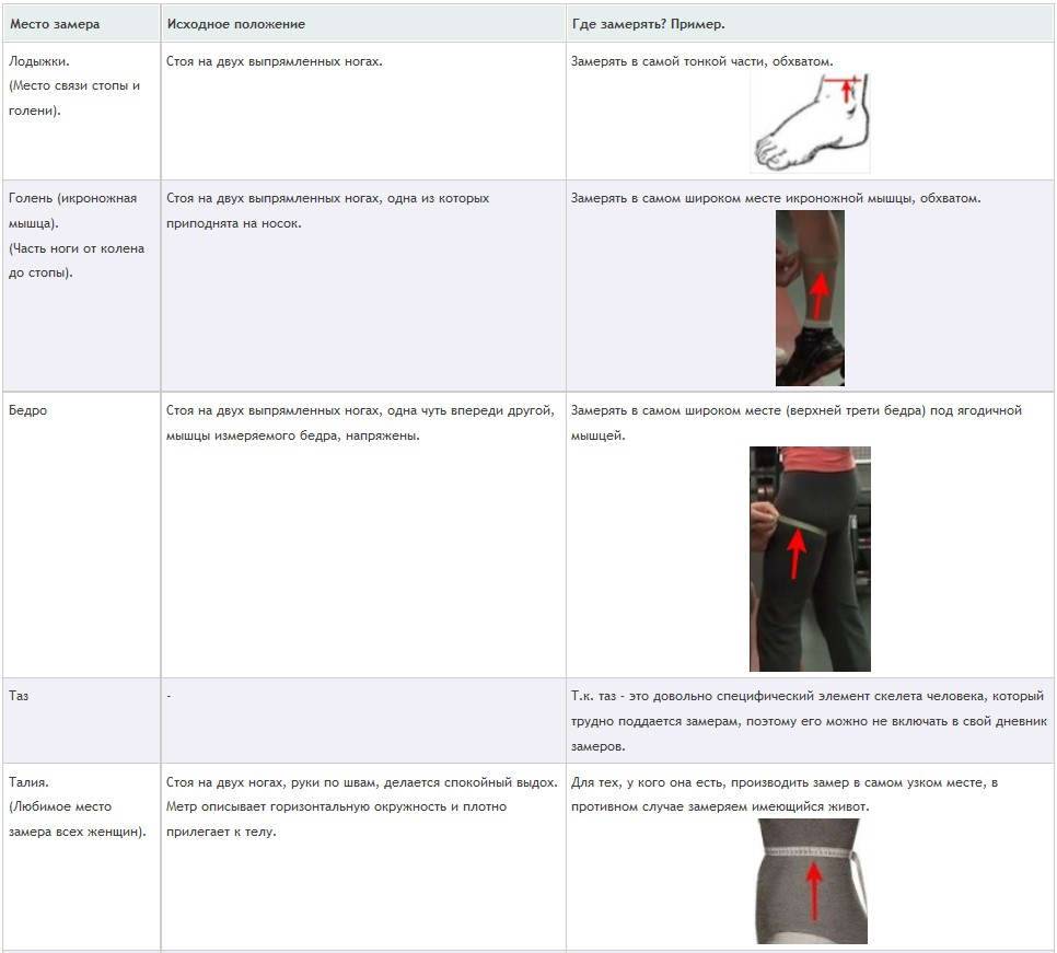 Часто бывает, что необходимо производить серию замеров, дабы лучше удостовериться в точности конечного результата. Кроме того, если опасаетесь, что забудете место, с которого производили замер, тогда повнимательней присмотритесь к своему телу и запомните (лучше запишите) характерный «идентификатор» данной части тела. Например, зона — предплечье, идентификатор – родинка на внутренней стороне руки в нужном месте замера. В общем, выделите характерные детали для каждой конкретной измеряемой зоны, чтобы было проще вспоминать куда прикладывать метр в следующий раз.