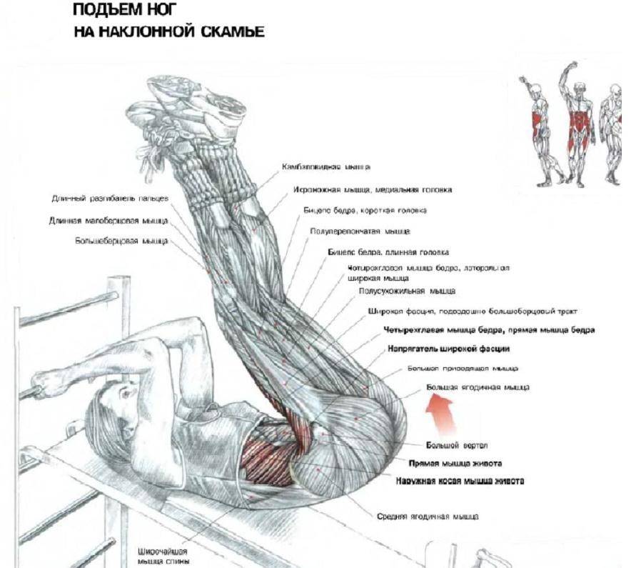 - прямой и косых мускул животика, как агонистов движения;