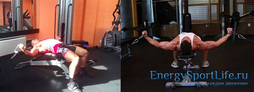 Упражнение № 4 — сведение рук в кроссовере на горизонтальной скамье