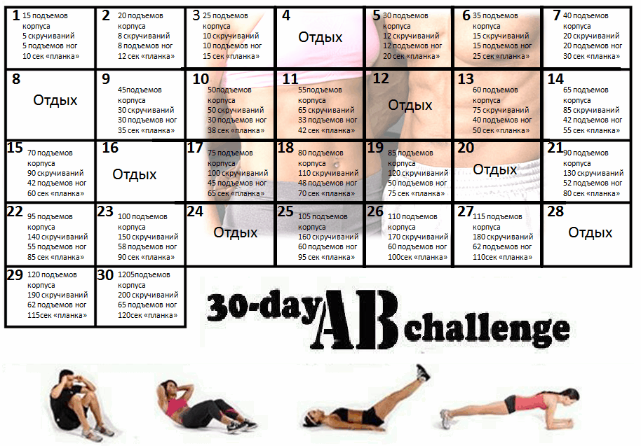 Вот вторая вариация программы упражнений на пресс на 30 дней:
