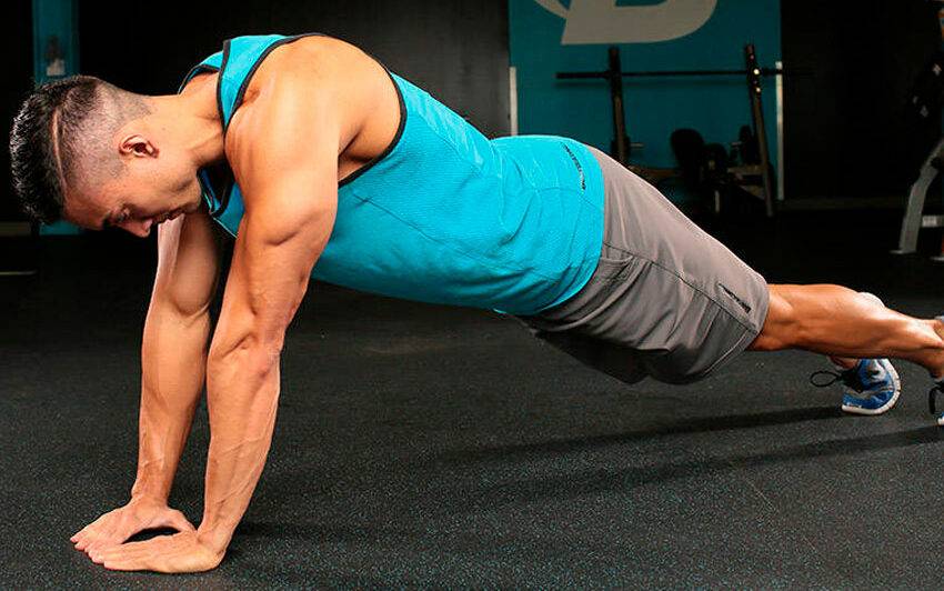 Выполнять упражнение нужно опусканием таза при сгибании рук в локтевом суставе до прямого угла. Предплечья должны сохранять перпендикулярное положение к полу, а локти не должны расходиться в сторону или сдвигаться внутрь