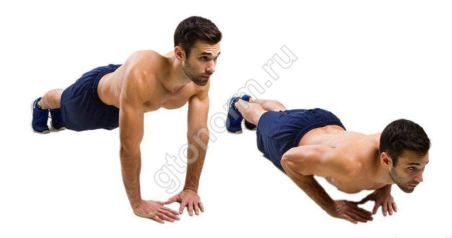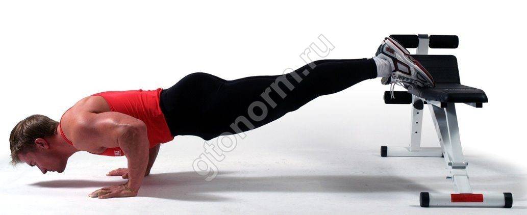 Сумеете отжаться с данного положения десять раз, потом нужно применять утяжеления.