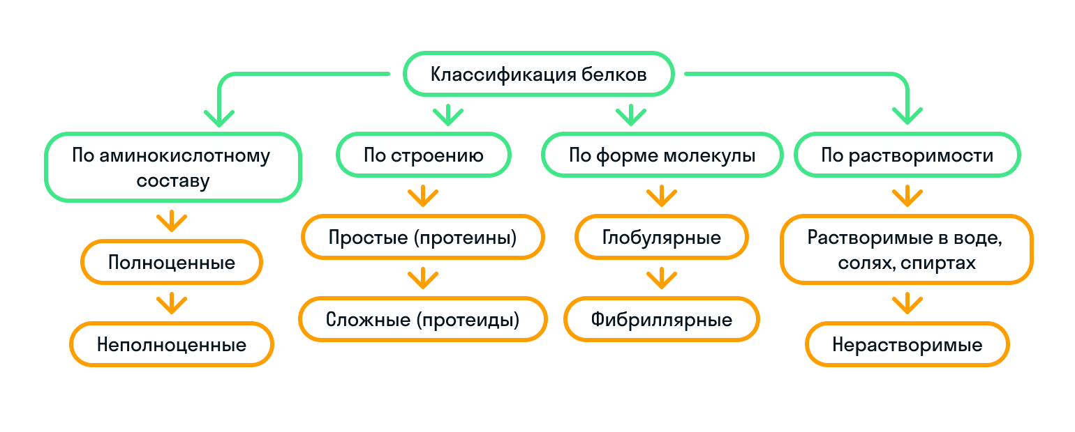 Чтобы запомнить классификацию белков было проще, показали ее на картинке:
