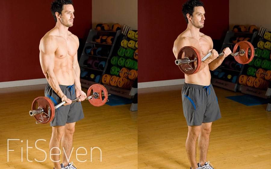 Базовое упражнение на бицепс. При подъеме и опускании веса движение является максимально близким к естественному движению локтевого и плечевого сустава. Выполняя подъем штанги на бицепс следите за тем, чтобы корпус не раскачивался, а локти были зафиксированы в одной точке.