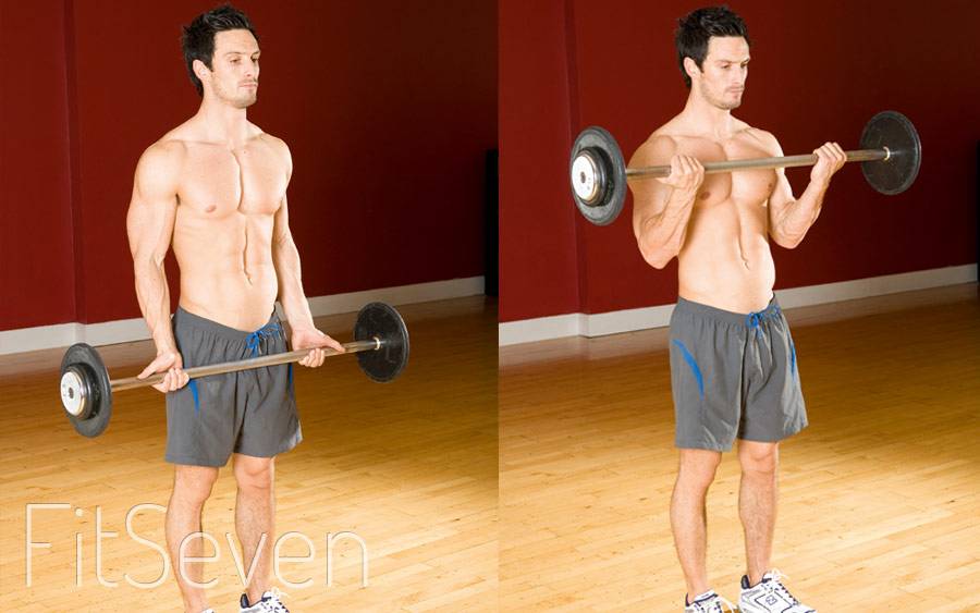 - подъем штанги на бицепс — техника пошагово