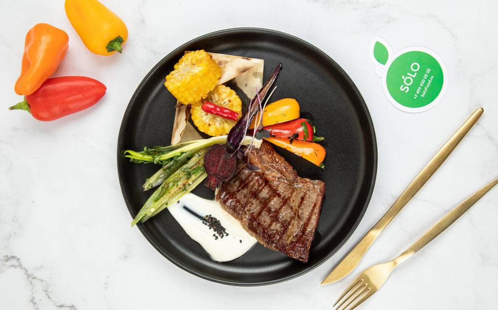Денвер стейк, маринованный в каджунских специях, с морковью и кукурузой на гриле в программе Solo Fitness
