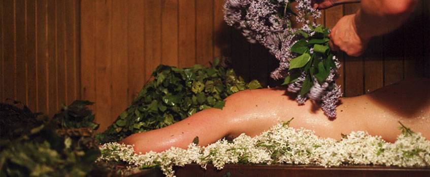 Для ароматизации воздуха в парной можно капнуть 2-3 капли скипидара в шайку с тёплой водой и понемногу брызгать этим раствором на горячие камни. Отдыхая, в качестве питья рекомендуется употреблять горячий чай – чёрный, зелёный или травяной. Большой веник делают составной – берёзовый плюс дубовый. Малый – из можжевельника, либо берёзовый плюс еловый. Работают двумя вениками крест-накрест, временами прикладывая горячий большой веник к болезненным участкам. Когда тело достаточно пропарится, к пояснице прижимают хвойный веник и хлещут по нему сверху берёзовым. Затем таким же образом прорабатывают проблемные зоны позвоночника. Процесс потребует от массажиста серьёзных усилий, но результат дорогого стоит. Однако не переусердствуйте!