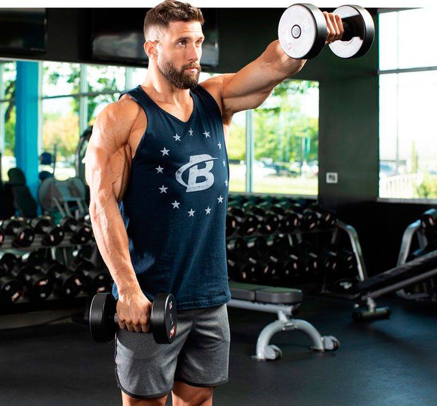В отличии от всех жимов, при выполнении махов, из работы исключен трицепс, и изолировано работает именно средняя плечевая дельта, которая отвечает за ширину. Если вы хотите накачать плечи гантелями, это упражнение обязательно должно присутствовать в вашей программе тренировок.