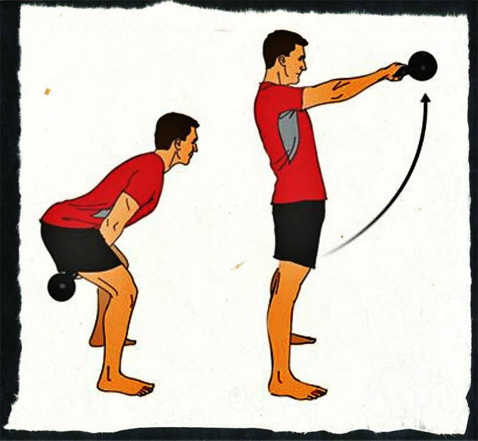- Оторвите гирю от поверхности и выполните замах.