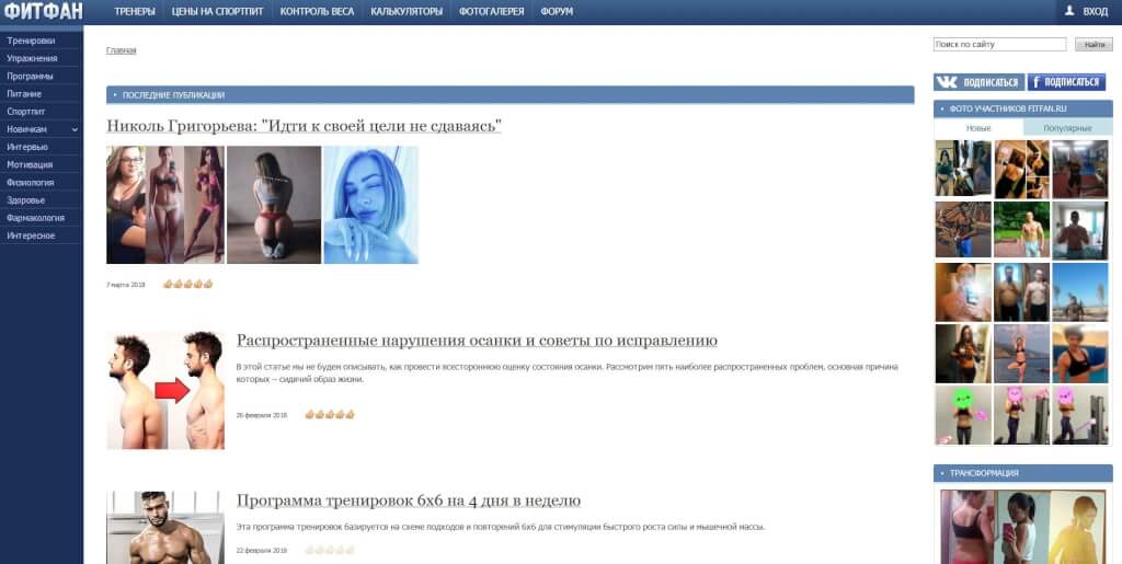 Помимо интересных статей про спортивное питание, фармакологию, физиологию, на сайте можно встретить калькуляторы обмена веществ, калорий и идеального веса, а также разместить свою анкету, если вы являетесь фитнес-инструктором.