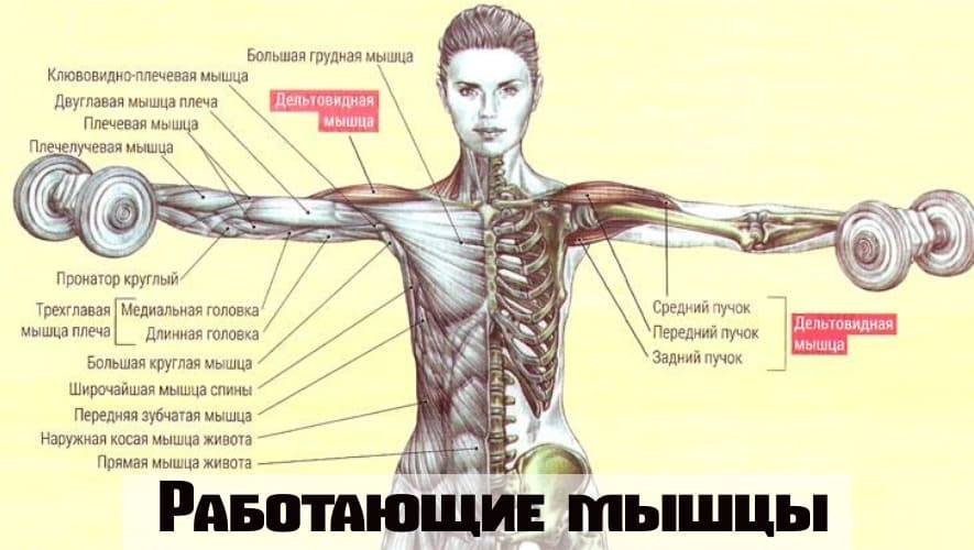 Работающие мышцы при разведении гантелей в стороны
