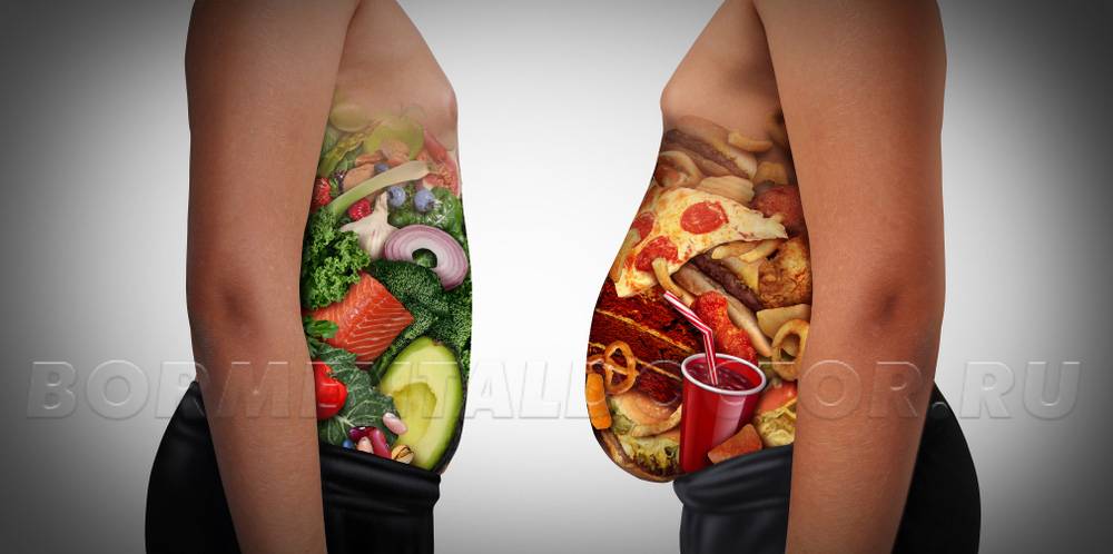 - Ограничить потребление жиров. Животный жир вдвое калорийнее, нежели углеводы. Если в меню жира не более 30%, то организм не требует увеличения дозы углеводов и белка, за счет этого калорийность рациона становится меньше на 10%.
