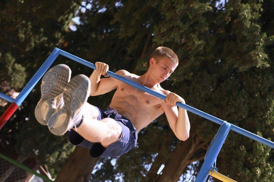 Существует ещё один вид отжиманий, который хоть и не является традиционным, способствует быстрому набору мышечной массы. Это отжимания на перекладине турника.