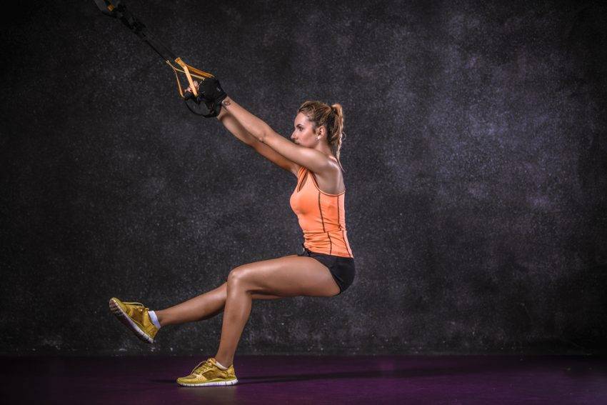 Упражнение с петлями trx для женщин и мужчин помогает натренировать квадрицепсы, ягодичные бицепсы, верхнюю часть спины.