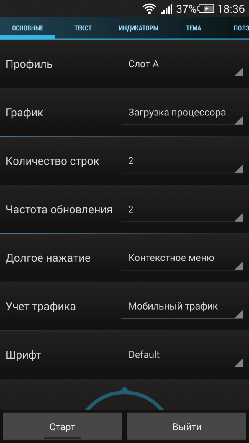 Представляет собой различные мини-виджеты, которые в реальном времени проводят анализ вашего устройства и отображаются на экране в удобном для вас месте. Можно настроить практически всё. В мини-виджет можно добавить огромное количество информации, начиная загрузкой процессора и заканчивая типом сетевого подключения. Можно также добавлять/удалять различные индикаторы, которые представляют собой разноцветную шкалу: индикатор частоты процессора, скорость закачки, уровень Wi-Fi-сигнала и т. д. Вы можете редактировать внешний вид виджета: тексту задаются различные цвета, настраивается ширина/высота плашек и т. д.