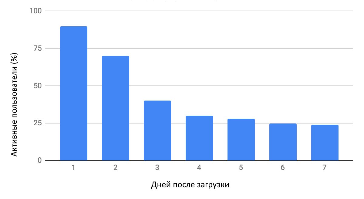 Для этого проанализируйте первый запуск и создайте когорту — сегмент пользователей, соответствующих заданному параметру. Затем отслеживайте, как долго эта когорта поддерживает активность в приложении. Например, можно задать конкретный период времени и отслеживать коэффициент удержания клиентов после трех, семи дней или месяца после загрузки.