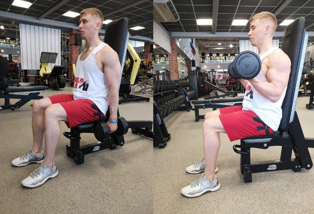 Это минимальный набор, который в совокупности заменит подъем штанги почти прямыми руками. Также слегка поможет и жим гантелей сидя (это будет полезно для укрепления бицепса).