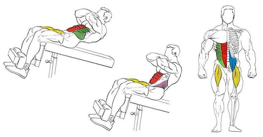 Схема задействования мышц при выполнении упражнения на пресс