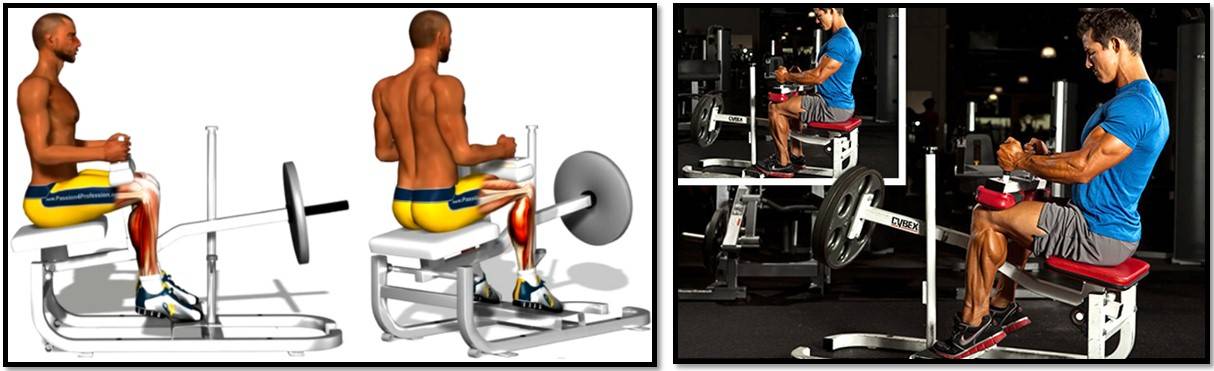 - Подъемы на носки сидя позволяет абсолютно изолировать камбаловидную мышцу;