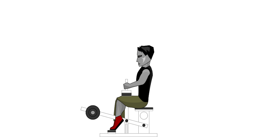 - Атлет садится в предварительно нагруженный тренажер, заводит колени под валики, отрегулированные перед этим на нужную высоту подъема, берется за рукоятки, и ставит ступни на край нижней платформы.