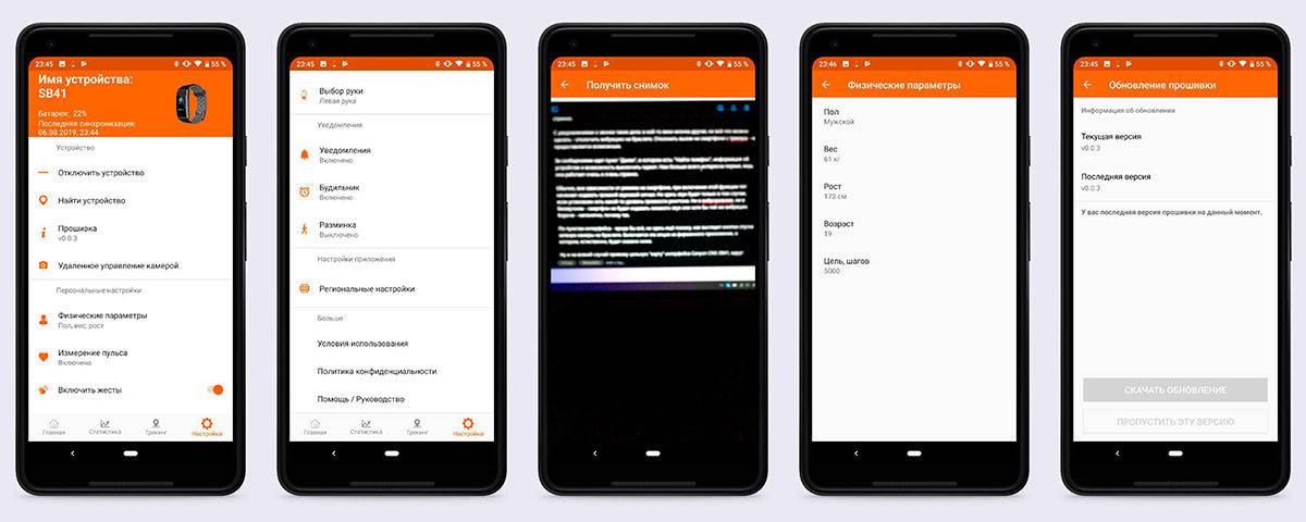 Затем производится настройка смарт-трекера под себя: выбор руки, на которой будет закреплен браслет, настройка уведомлений, будильника, региональные настройки, активация жестов и другое. С этим разберется даже ребенок, но если возникнут трудности — инструкция на русском языке входит в комплектацию Canyon CNS-SB41BG.