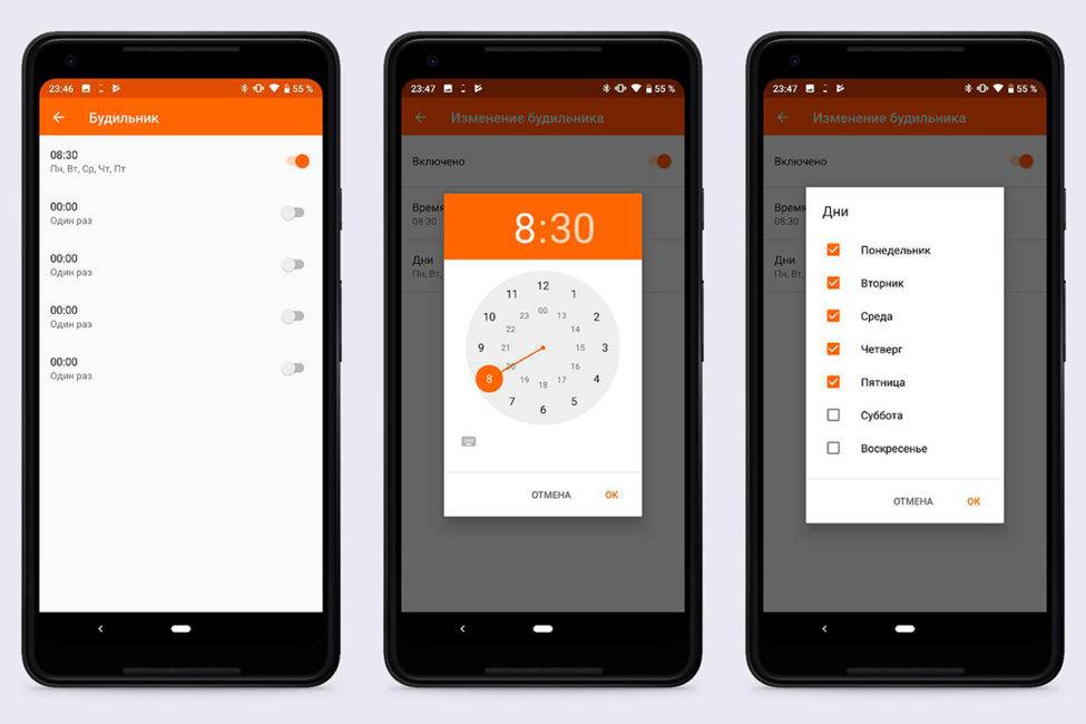 Если смартфон у меня в руках с включенным экраном — на кой мне нужен лишний дублирующий сигнал в виде вибрации на браслете, ну серьезно? По-хорошему, должен быть тумблер как в том же Mi Fit — уведомлять только при выключенном экране. Будильник — есть пять заготовок, которые можно настроить: указать время и выбрать дни срабатывания.