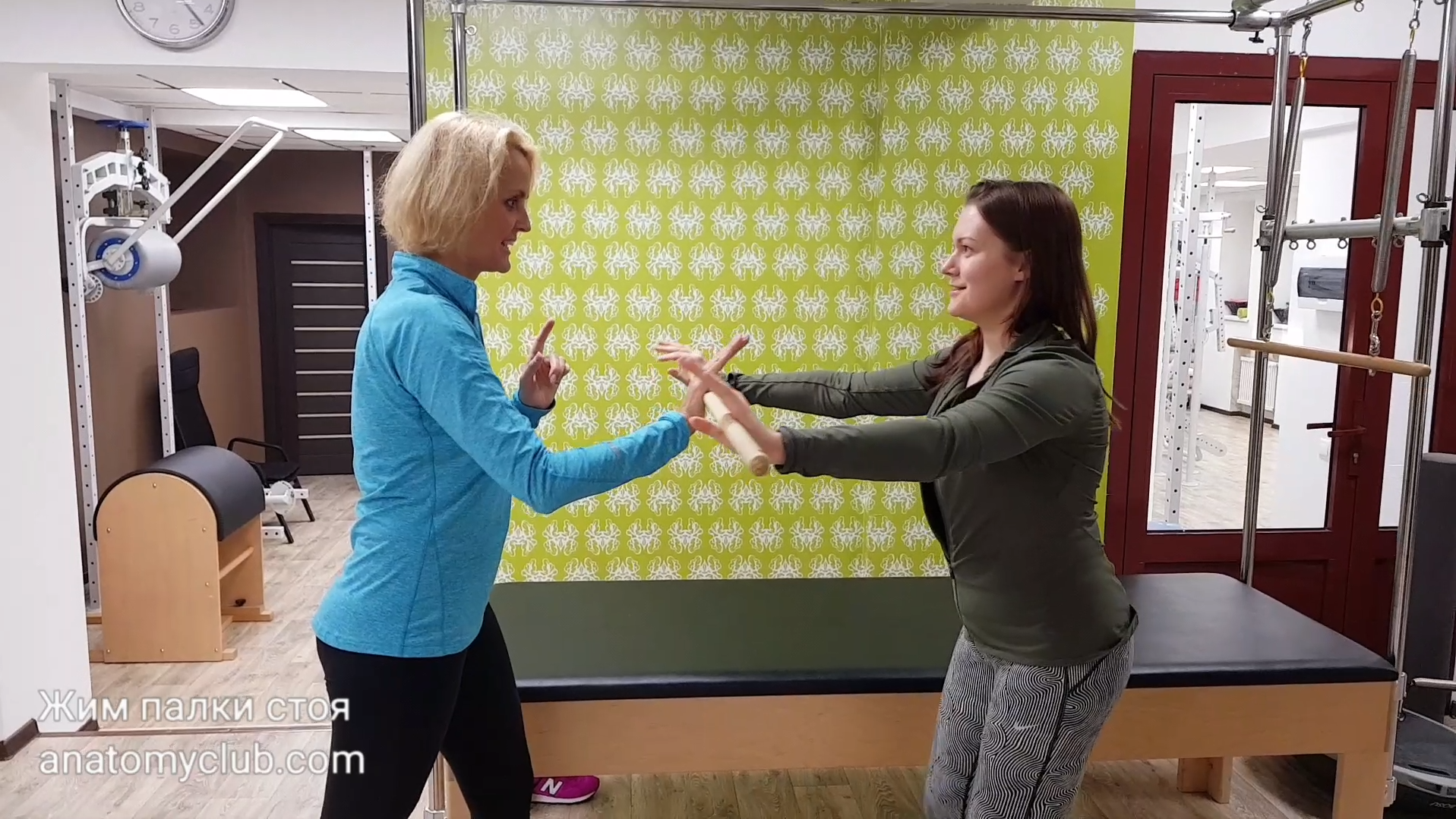 ЖИМЫ ДЕРЕВЯННОЙ ПАЛКИ СТОЯ ЭКСЦЕНТРИКА + КОНЦЕНТРИКА Клиенту важно научиться находить опору внутри себя. Тренер давит на палку, клиент уступает, затем концентрически выжимает и тренер в свою очередь уступает