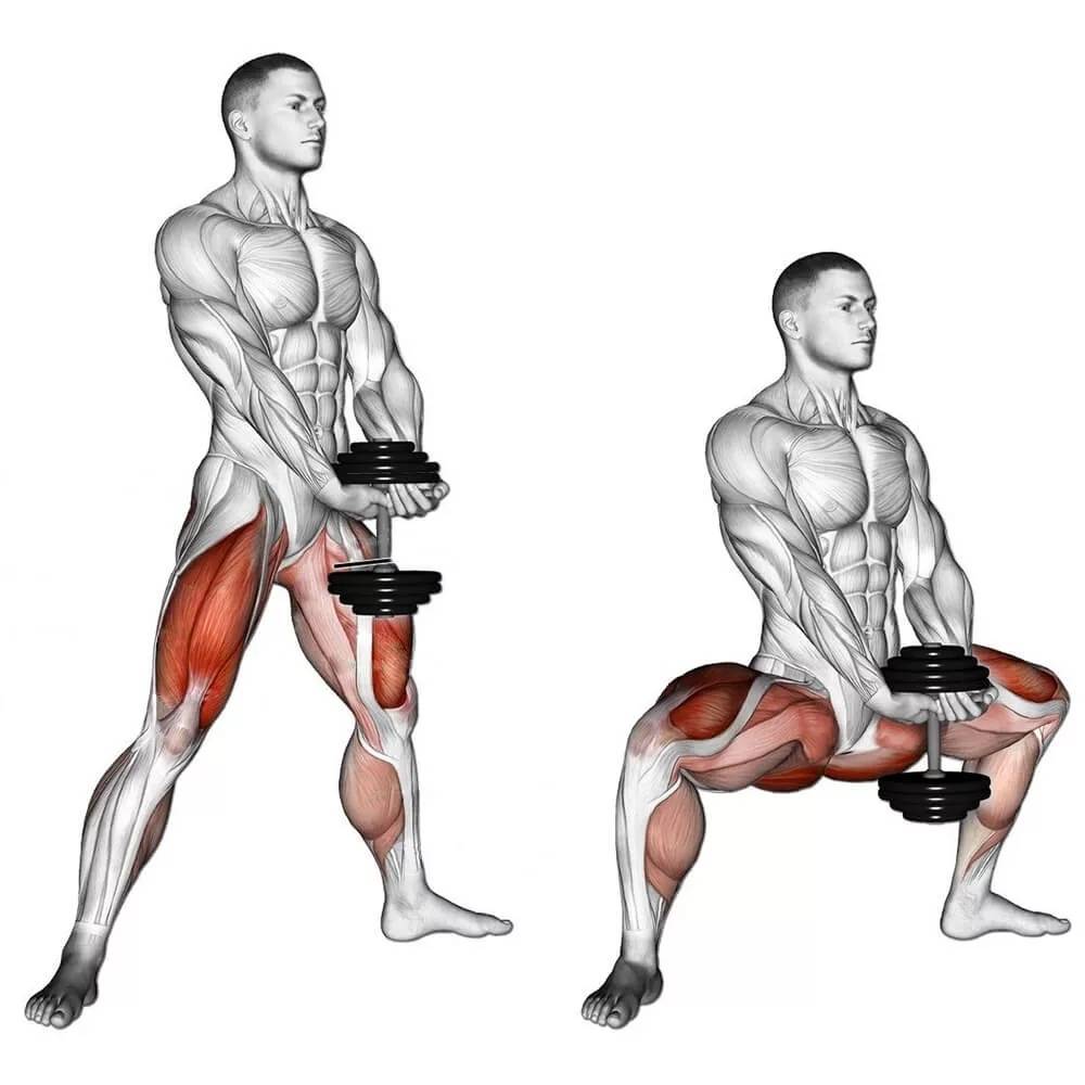 Этот вид приседаний эффективно нагружает ягодицы, икры и бедра (особенно внутреннюю часть).