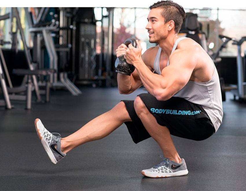 ![]() Плие с одной гирей выполняется почти также, как без гири. Просто в упражнение добавляется пару действий. В созданной стойке (Плие) берем двумя руками гирю. Руки ставим между коленями, и локти немного сгибаем. При выпрямлении ног, утяжеления по возможности подтягиваем к груди. |