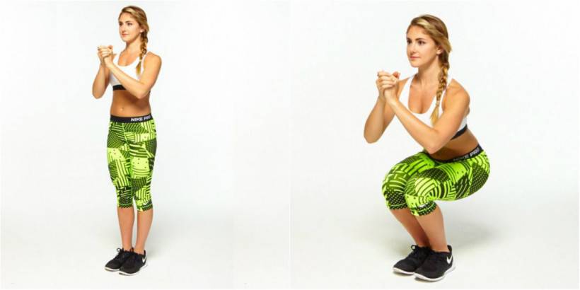 - Делайте вдох во время приседа, а выдох, возвращаясь в исходное положение.