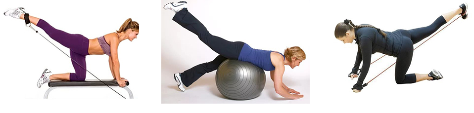 - Отведение из положения стоя на четвереньках с эластичной резинкой