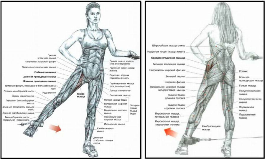 Отведение ноги в сторону в кроссовере стоя — техника выполненияВажно не брать большой вес, если вы только начали выполнять это упражнение (можно повредить колени). Стараясь отвести ногу как можно дальше, не перестарайтесь, чтобы не получить растяжение