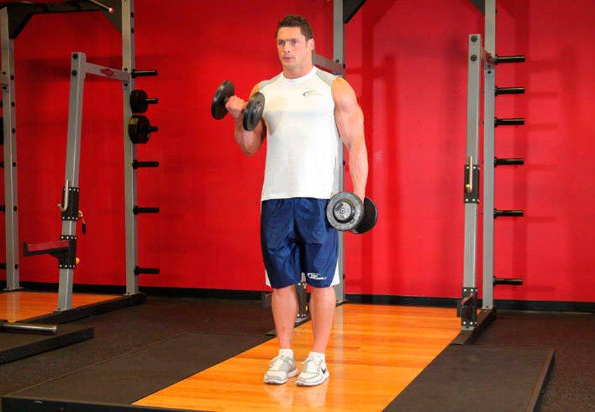 Это упражнение прорабатывает брахиалис. Данная мышца находится под обоими головками бицепса, придает им большего объема.
