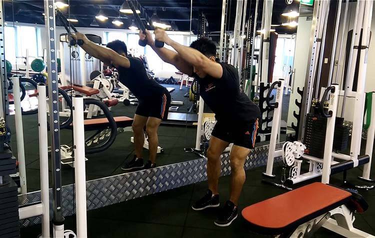 - отрегулируйте кабели так, чтобы при захвате рукоятей ваши плечи по отношению к торсу находились под углом около 70°;