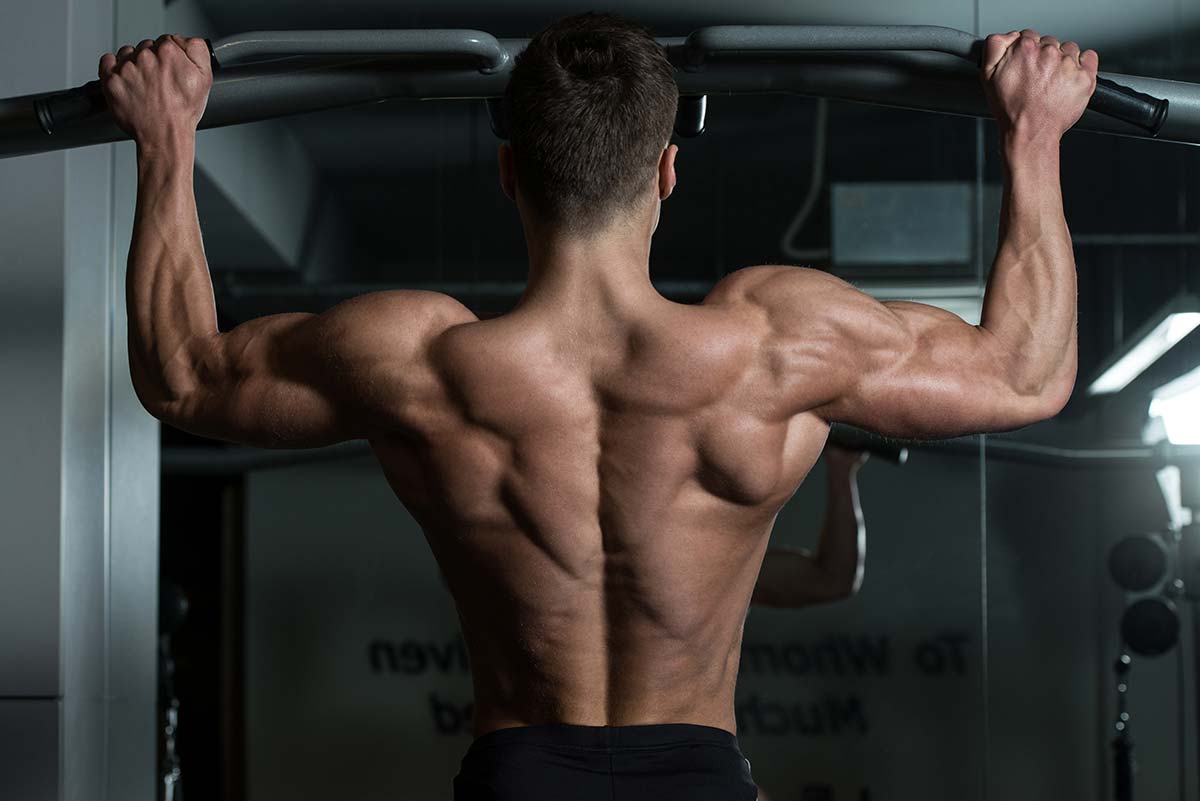Широчайшие мышцы спины — ключевые мышцы, задействованные в подтягиваниях и в тяге верхнего блока сидя. Они расположены на левой и правой частях корпуса, веерным образом расходясь от плечевого сустава. Для того, чтобы задействовать их при выполнении упражнения вся ладонь, включая большой палец, должна лежать на турнике сверху.