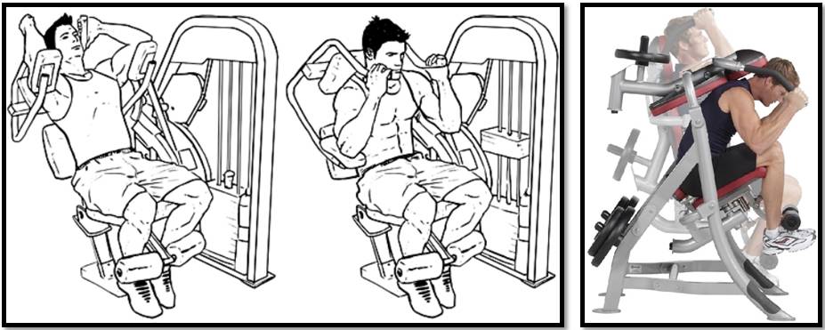 | Скручивания в тренажёре | Верхний пресс | 2-3 подхода по 12-15 повторений |