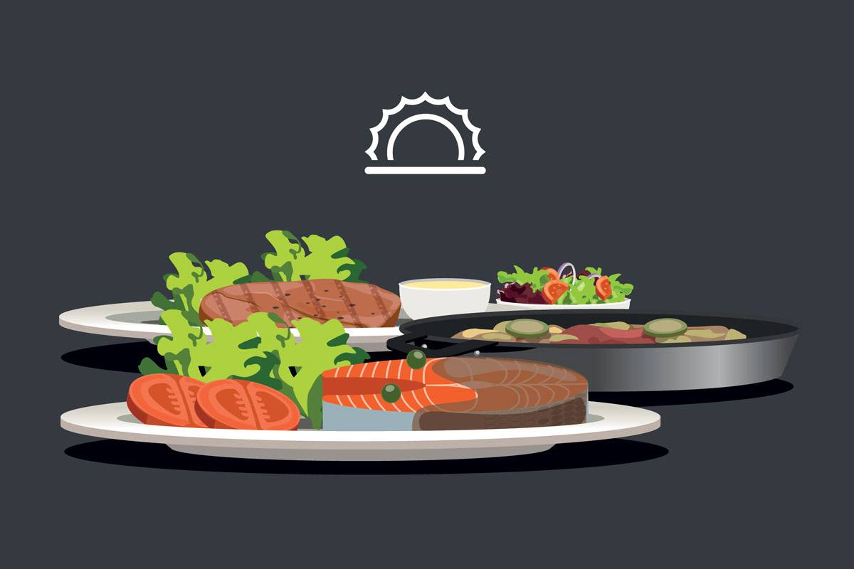 Что касается рекомендаций правильного питания, то лучшим вариантом на обед станет комбинация источников протеина (мясо, курица, рыба) с цельнозерновыми крупами и овощами. На ужин рекомендуется есть больше зеленых овощей — сокращая макароны, источники крахмала (например, картофель) и животного жира.